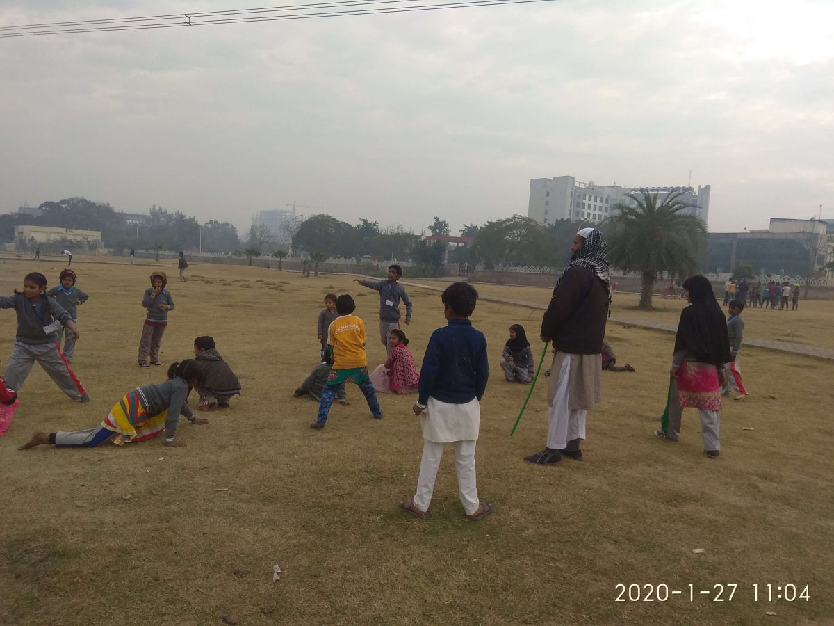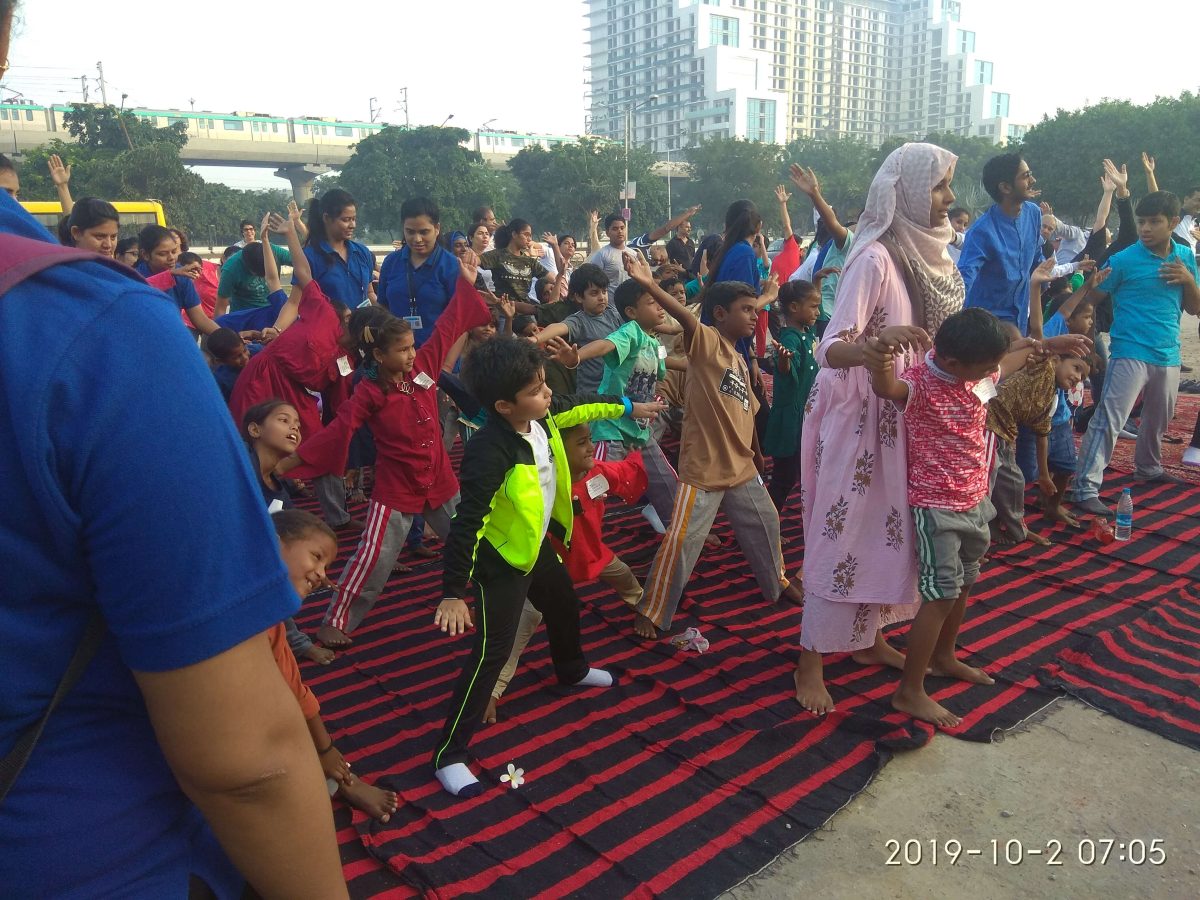 Children celebrate Republic Day 2020 by playing games in a nearby public park. (Pic on the right) Children participate in a yoga event marking Gandhi Jayanti on 2 October 2019 at Grater Noida’s City Park.